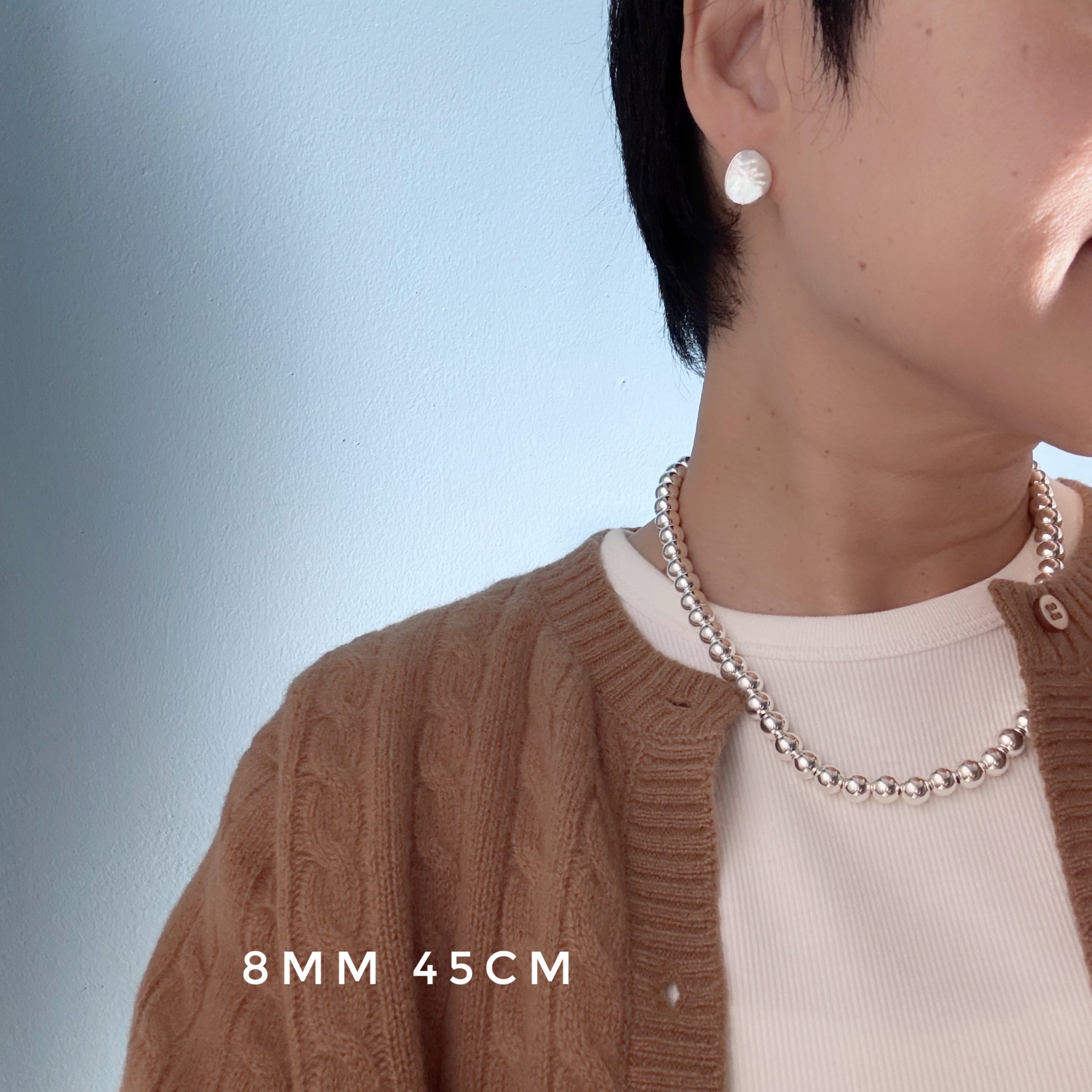 (真珠ではなく、とっても綺麗に輝くハンドメイドのシルバーボールを連ねたネックレスです。)