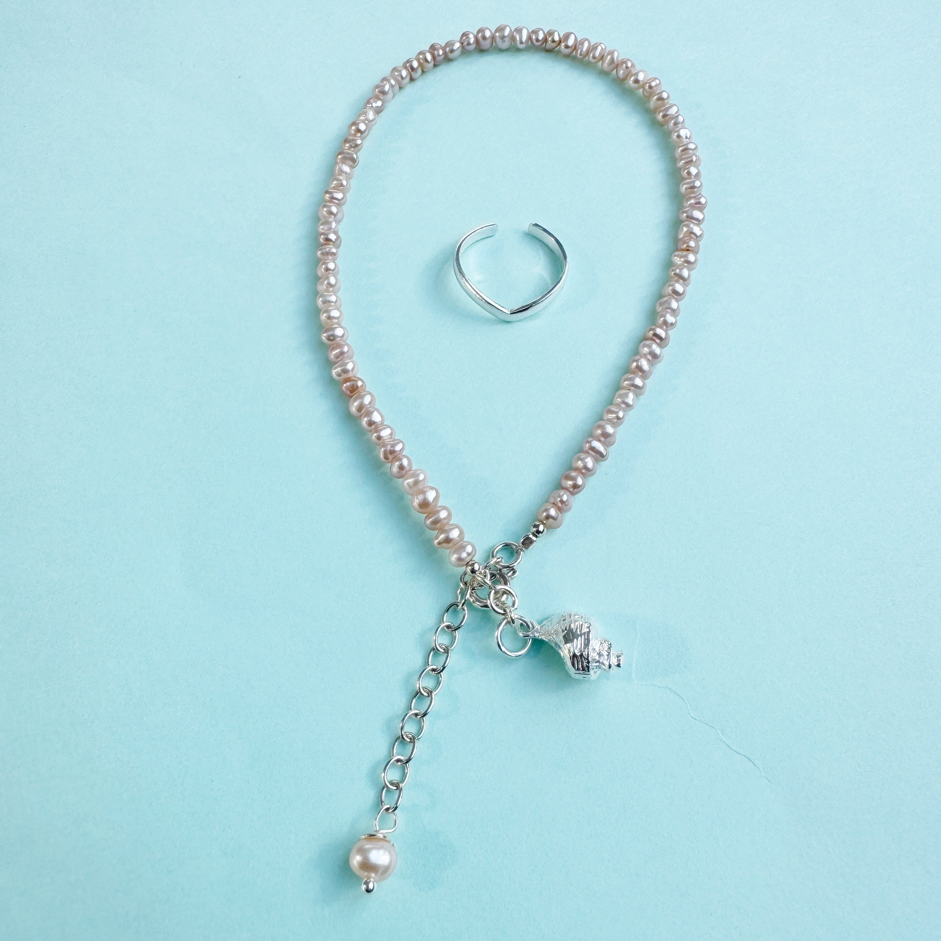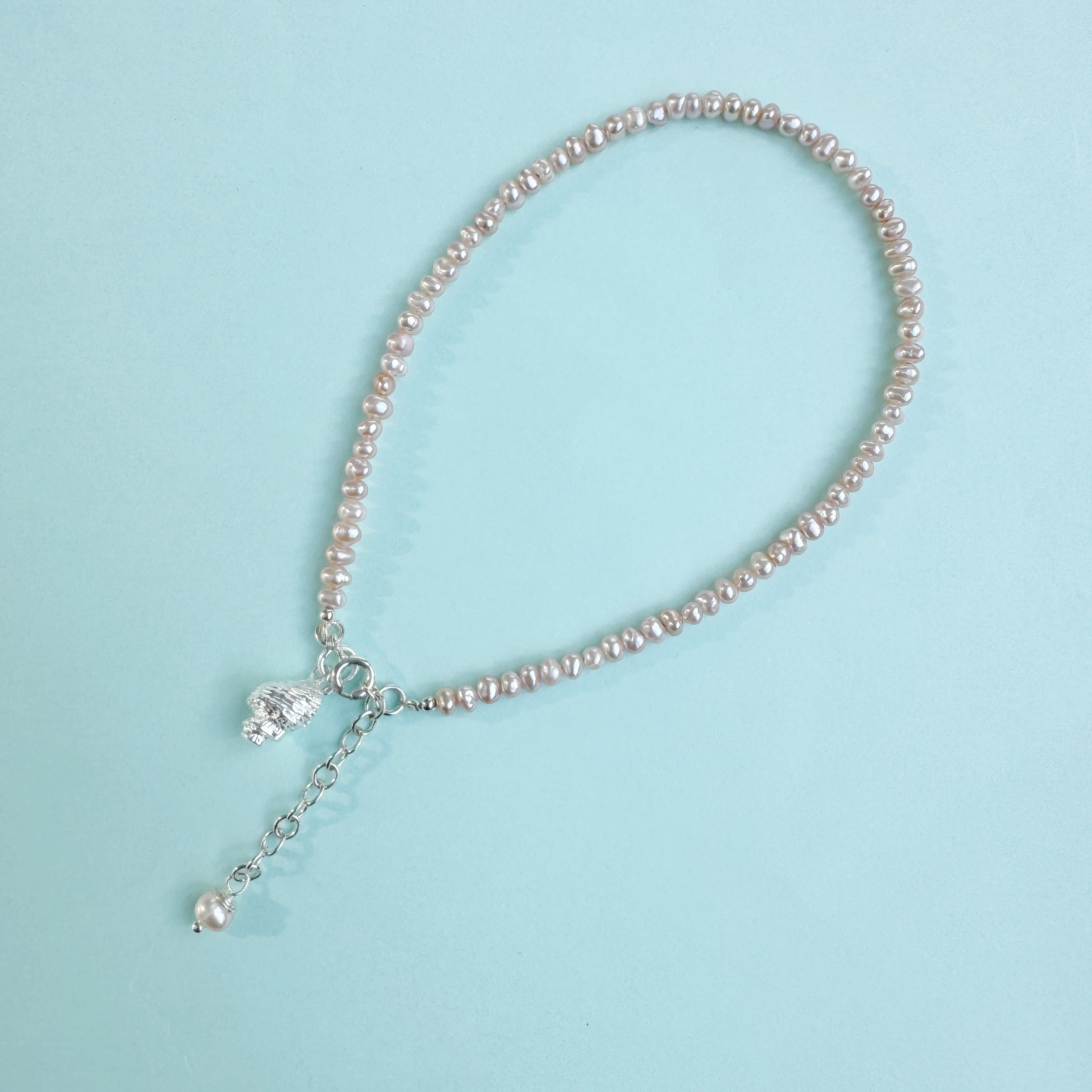 小さなベビーパールをつなぎ合わせたアンクレットに、