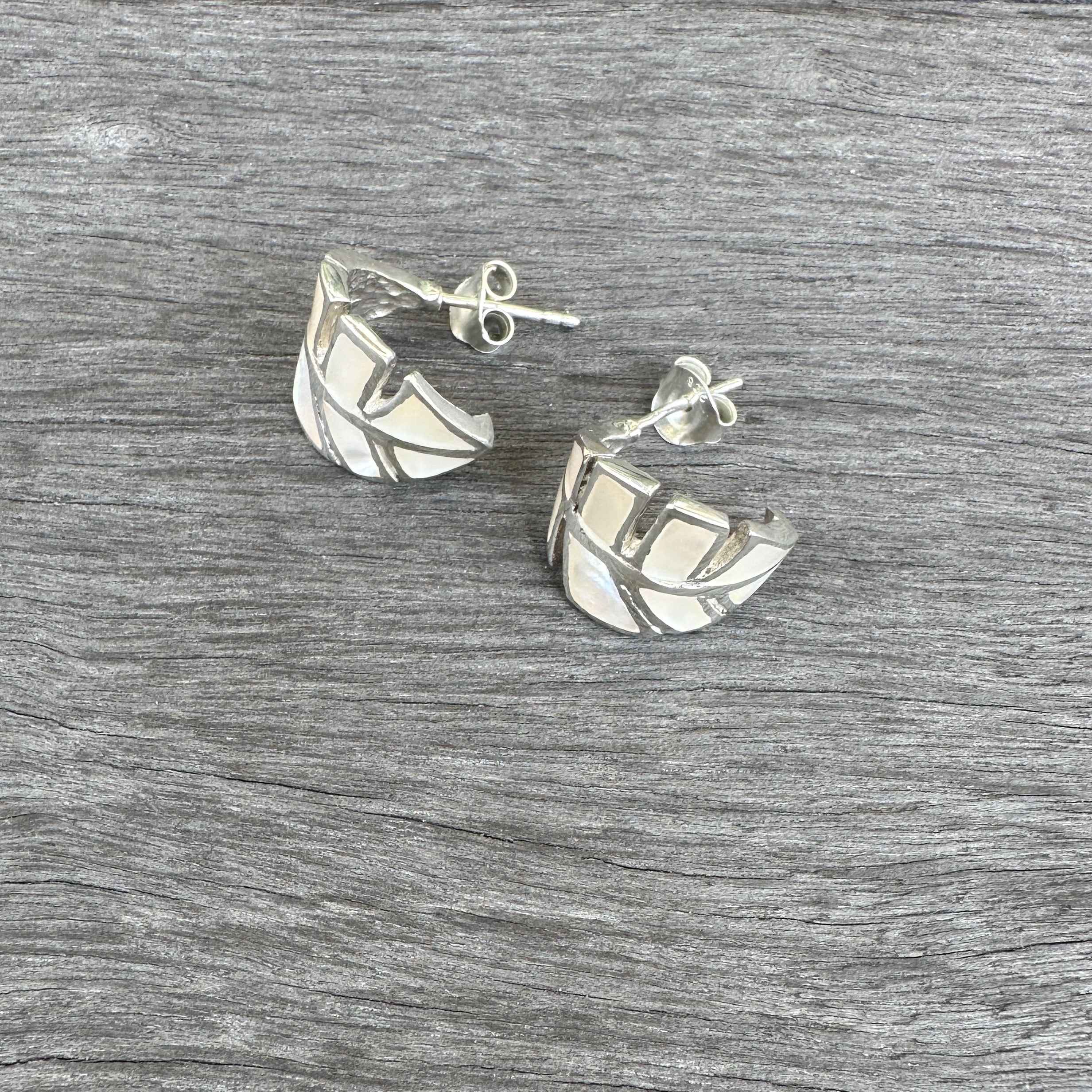 【ラスト1!】白蝶貝 リーフ スタッドフープ ピアス