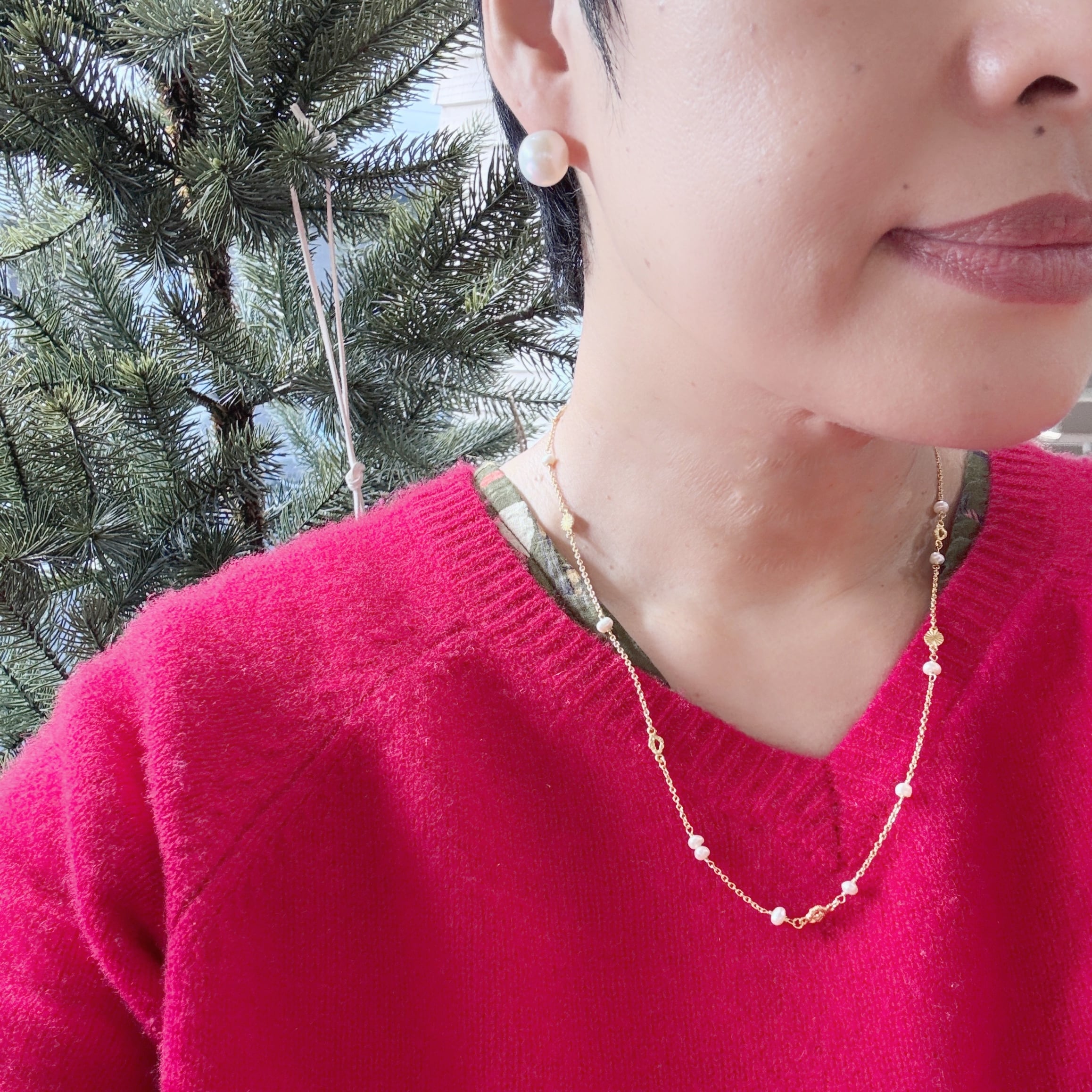 落ち着いたカラーのお洋服でも、トレンドカラーのお洋服でも万能に合わせられるパールは