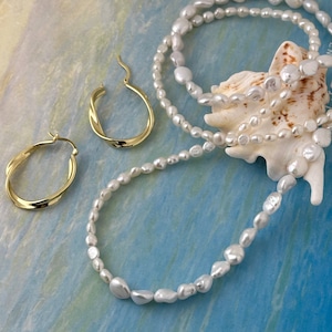 大きさの違うバロックパールのハーフandハーフで仕上げたLagoon Originalのネックレスです。