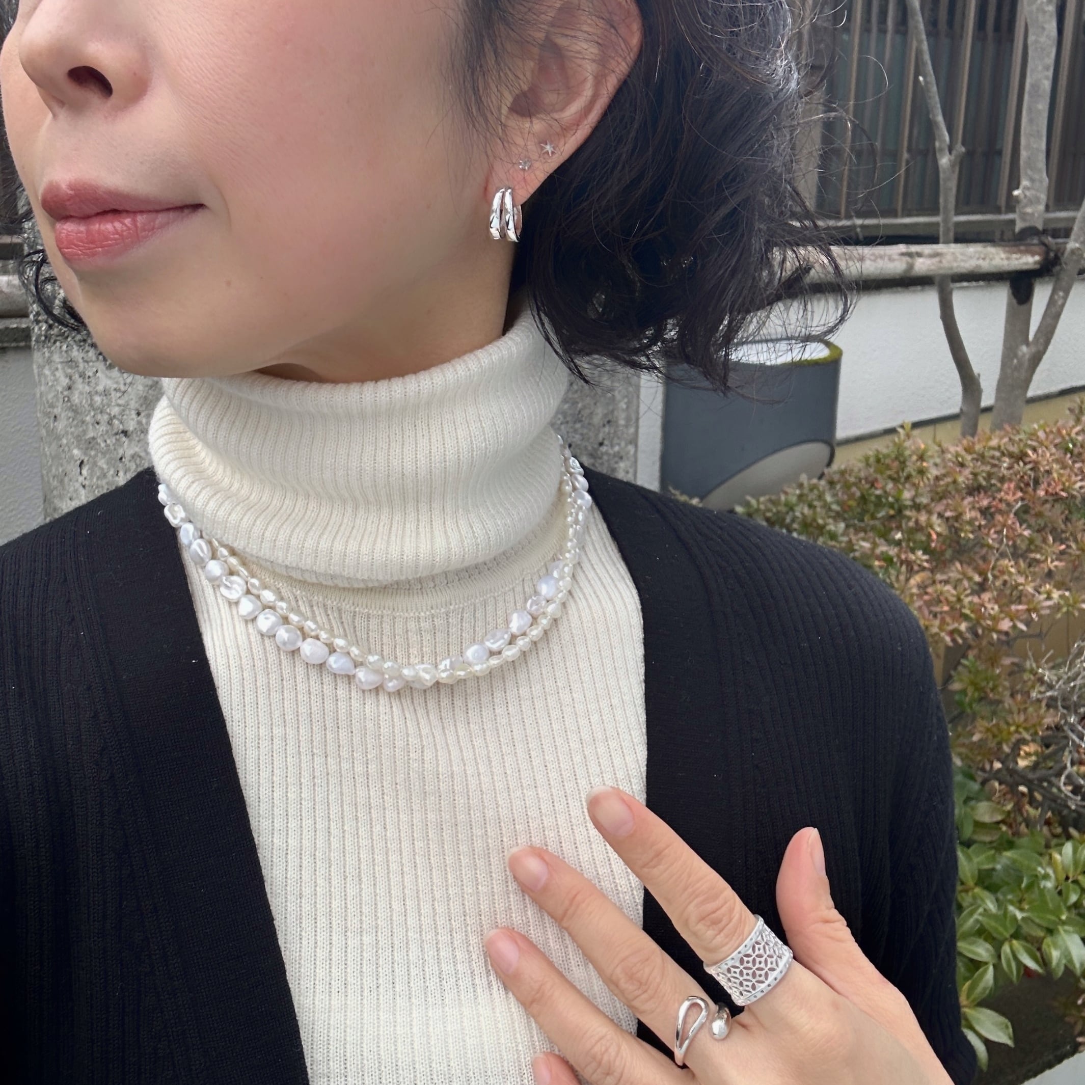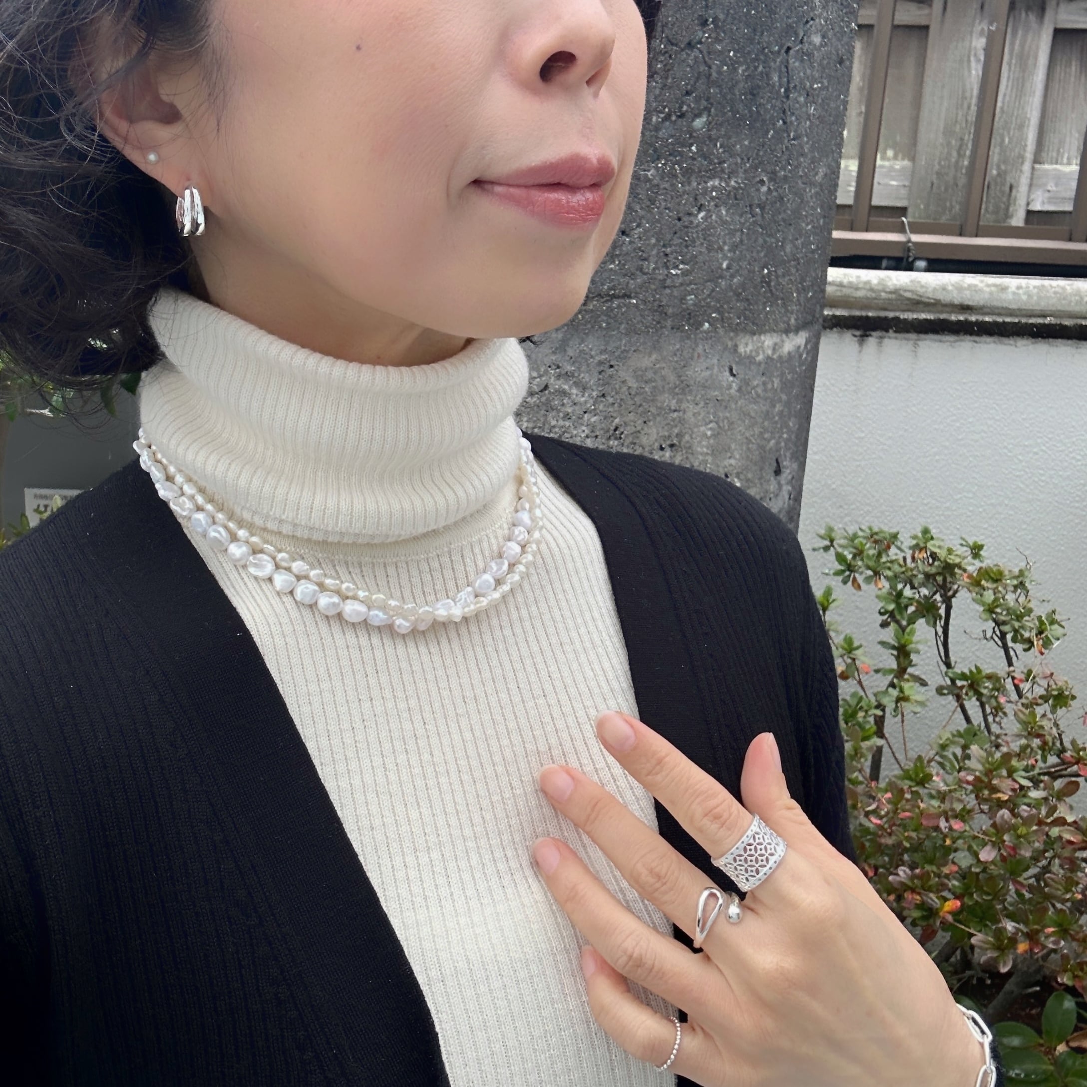 二重にすると大きさの違うパールで2連になって楽しめます。