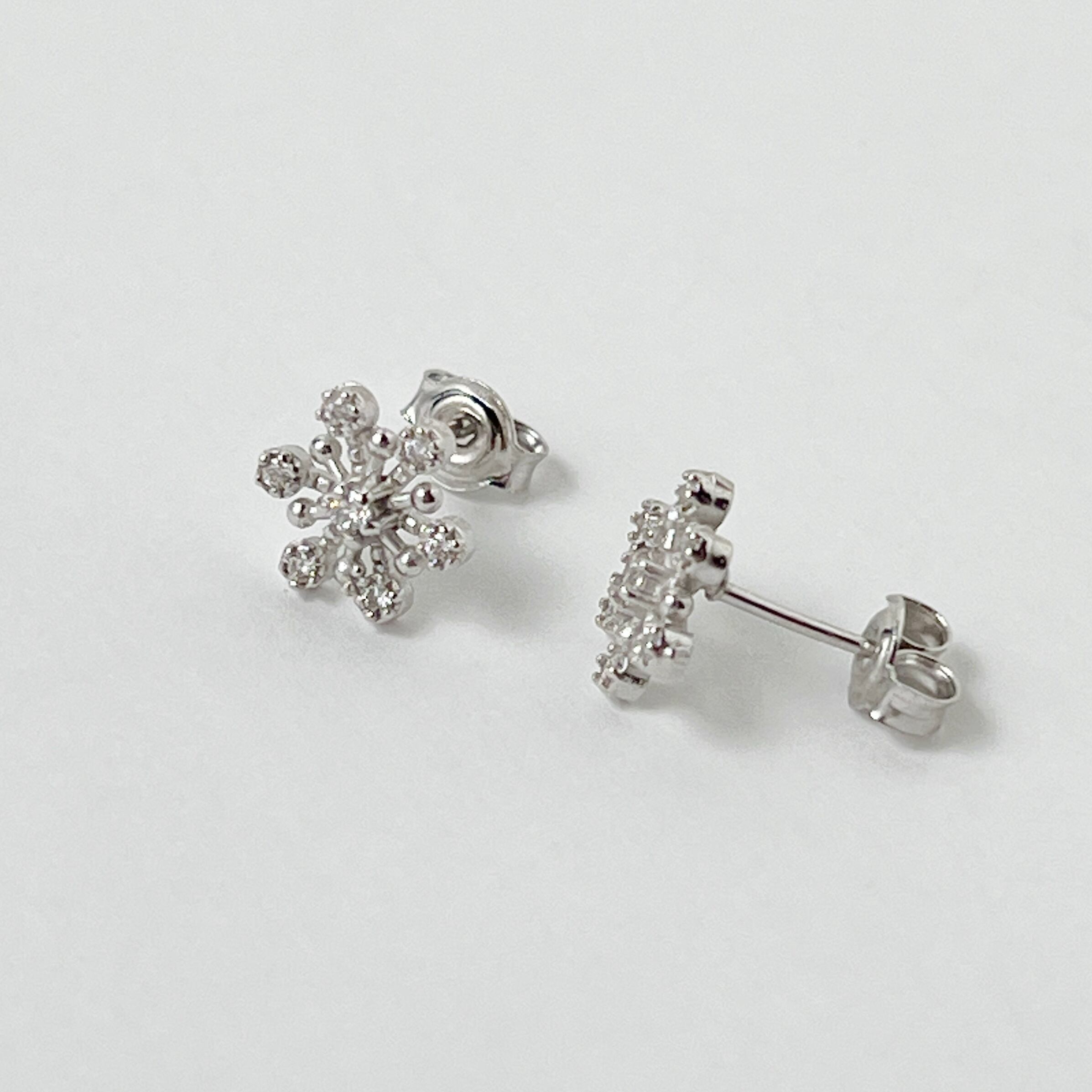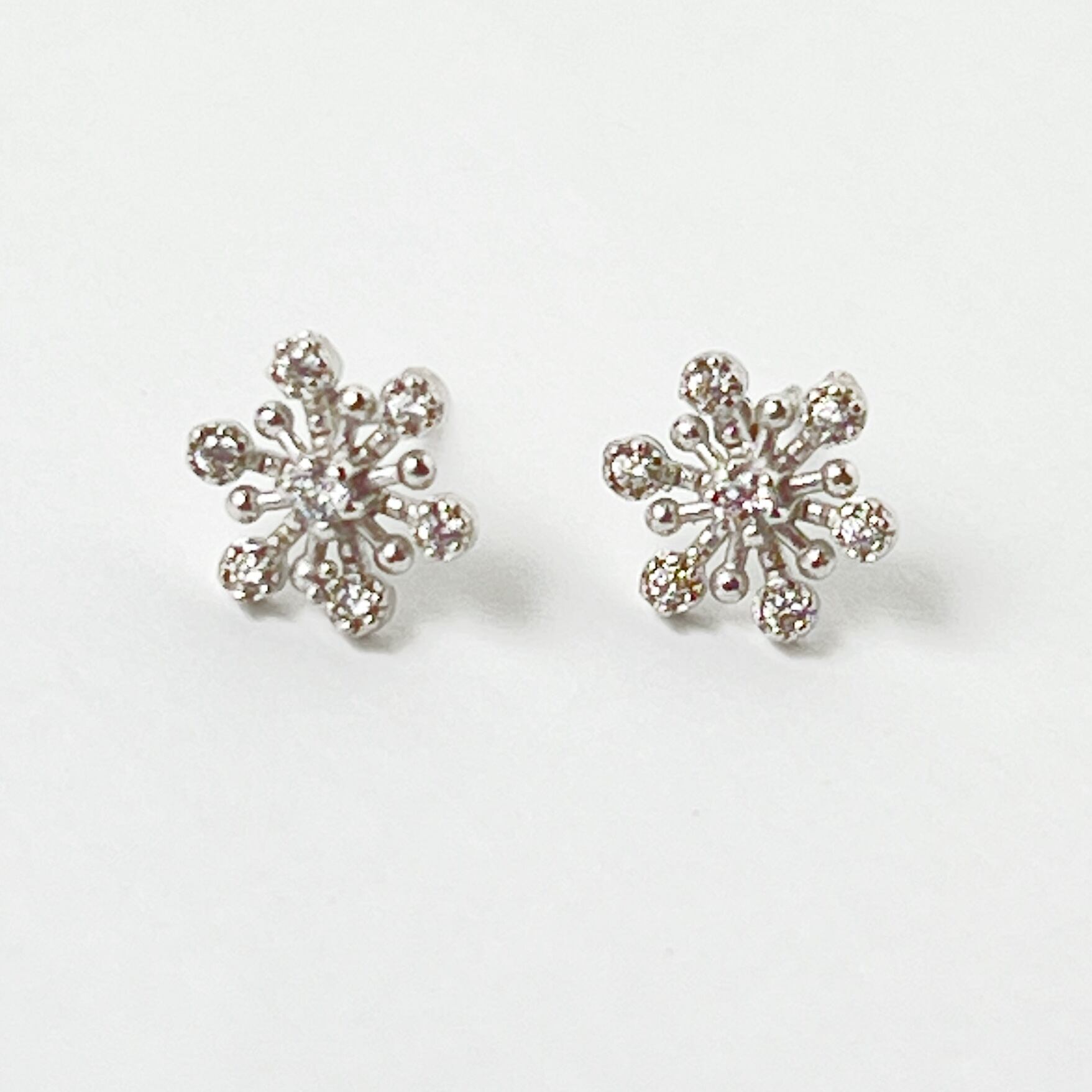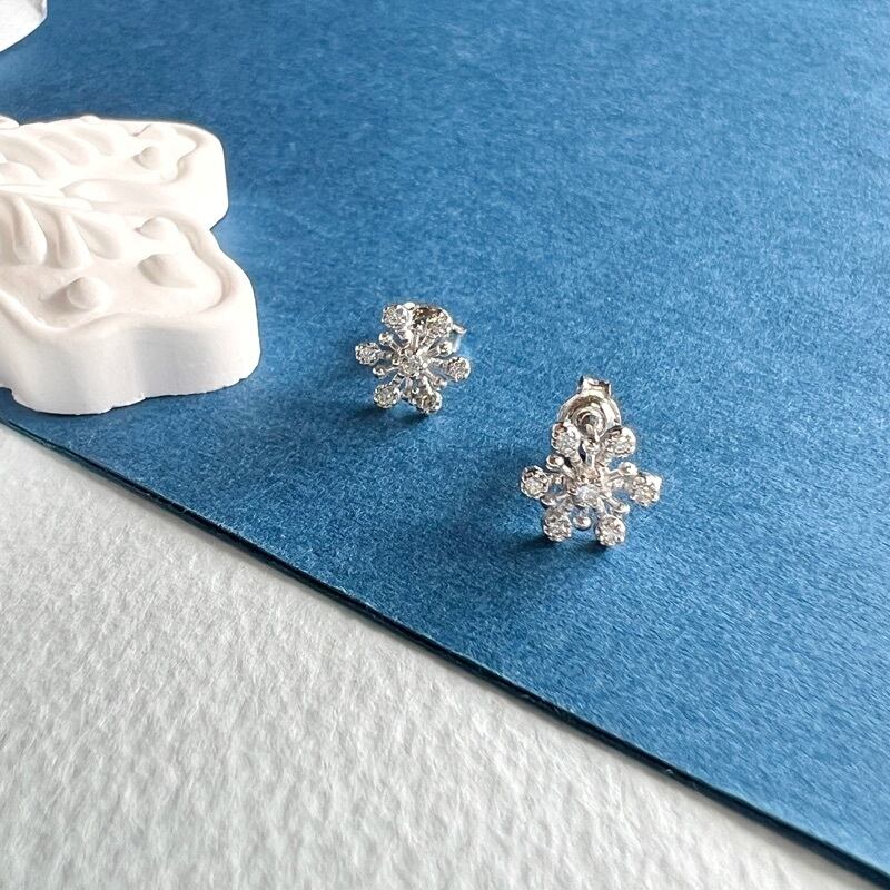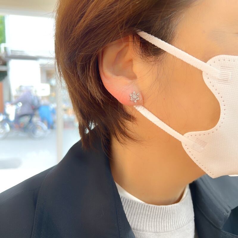 六方形の雪の結晶をモチーフにしたスタッドピアスは、可憐な印象で可愛らしくつけていただけるピアスです。