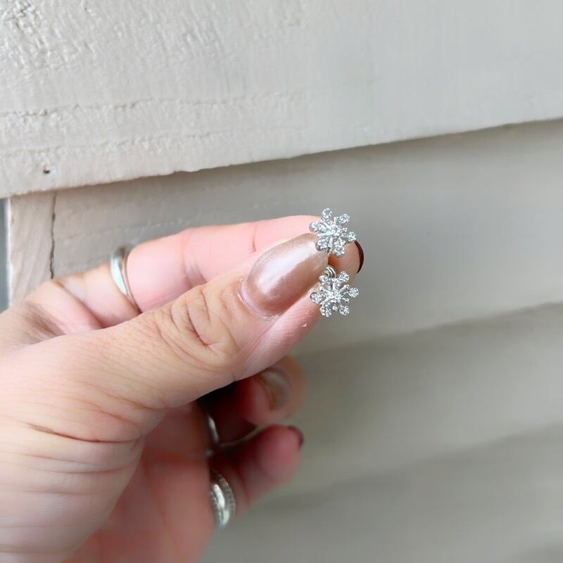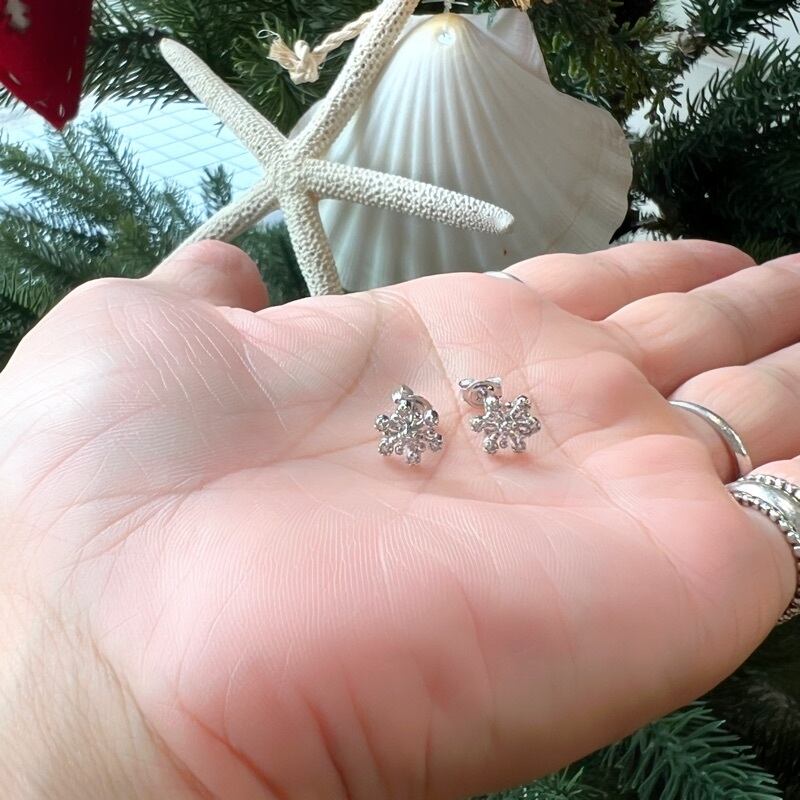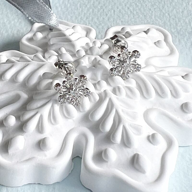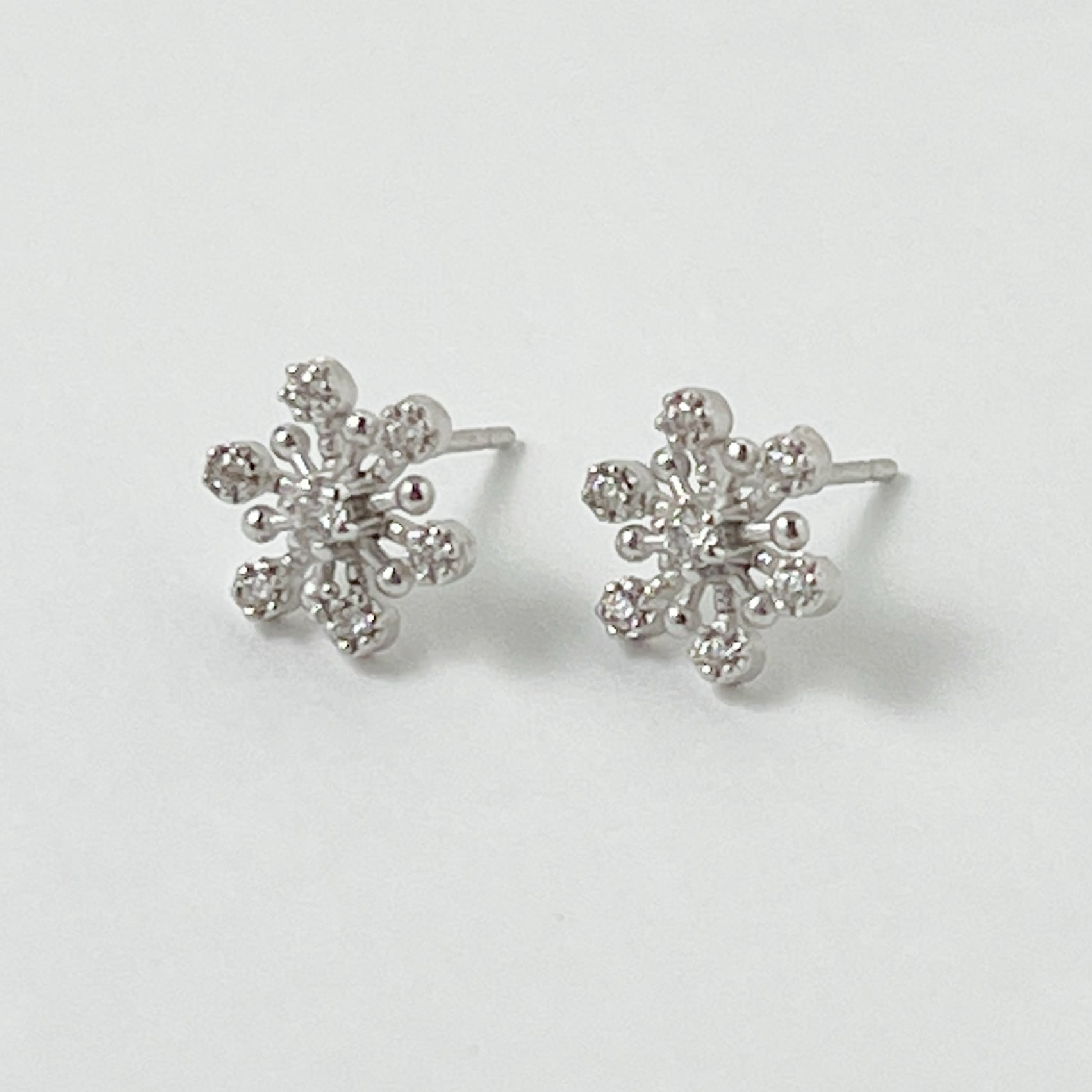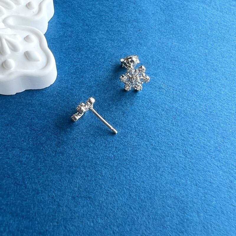六方形の雪の結晶をモチーフにしたスタッドピアスは、可憐な印象で可愛らしくつけていただけるピアスです。