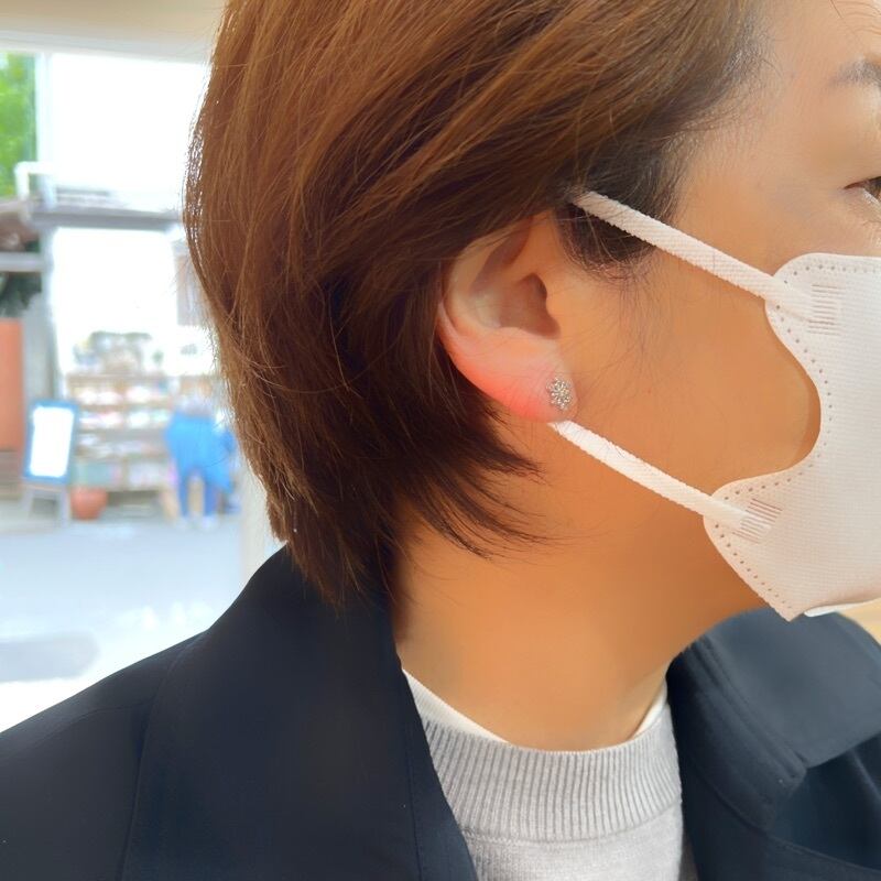 ピアス一点だけつけただけでも華やぎます。