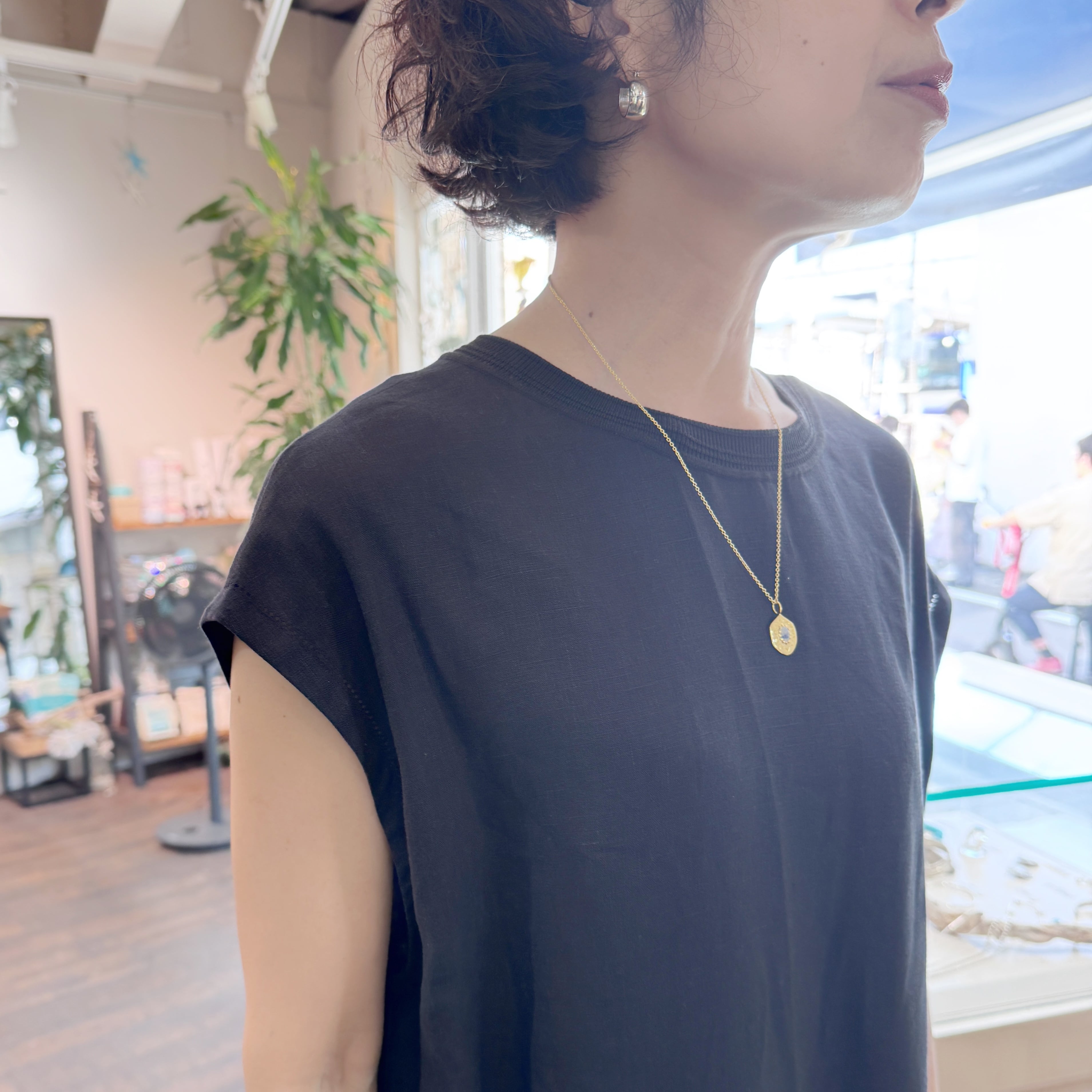 TOPの大きさとバランスの良いフラットあずきチェーンにセットしました。3cmのアジャスター付きなので最大48cmまで楽しめます。