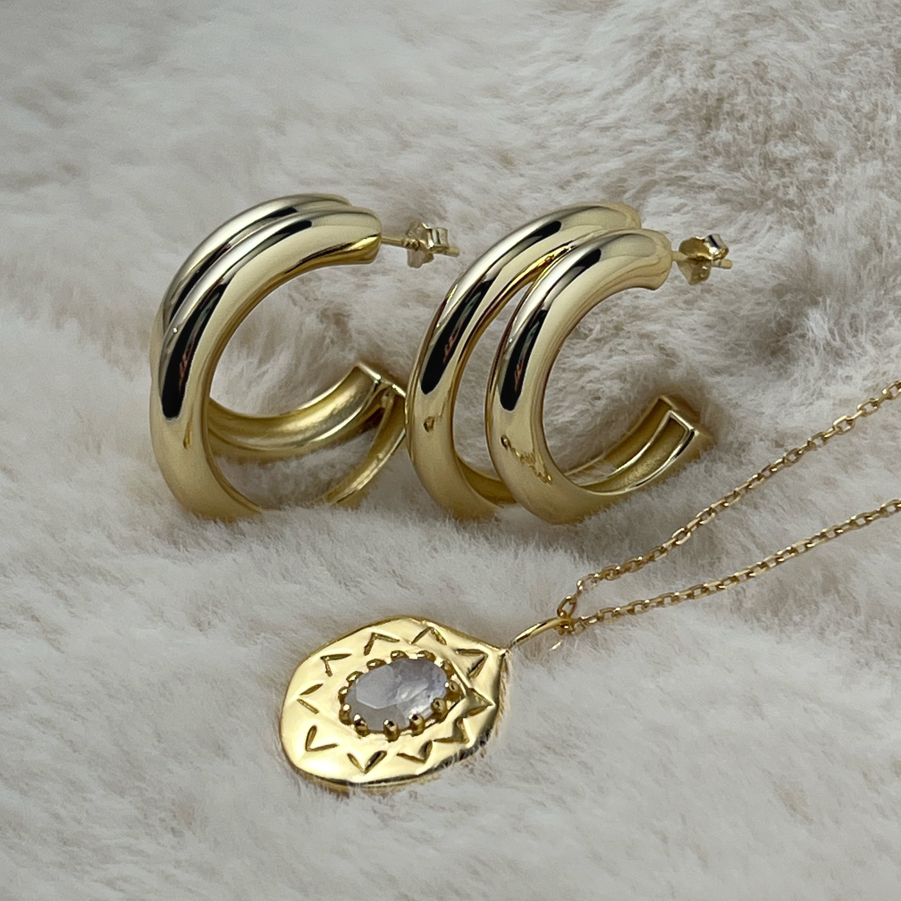 【Lagoon Original】Gold Coating レインボー ムーン ストーン サニー プレート ネックレス
