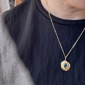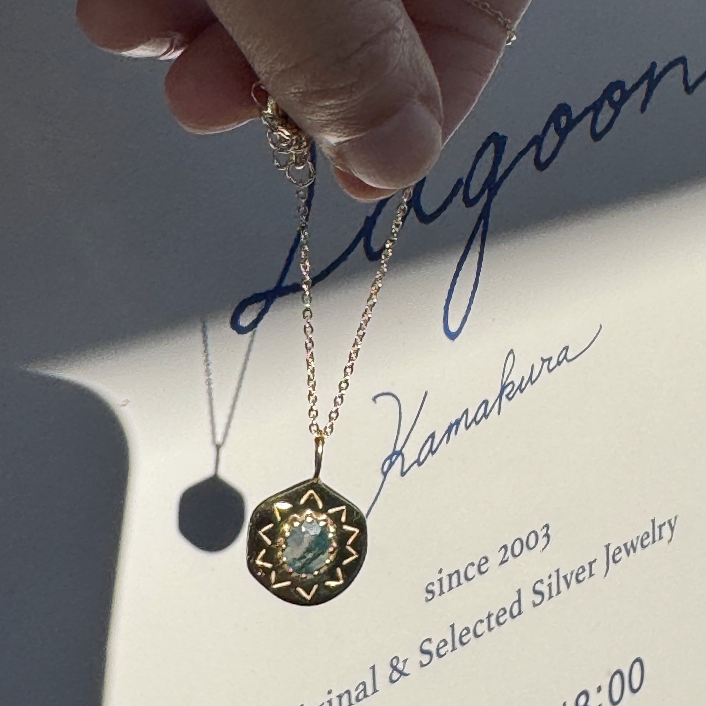 【Lagoon Original】Gold Coating モスアゲート サニー プレート ネックレス
