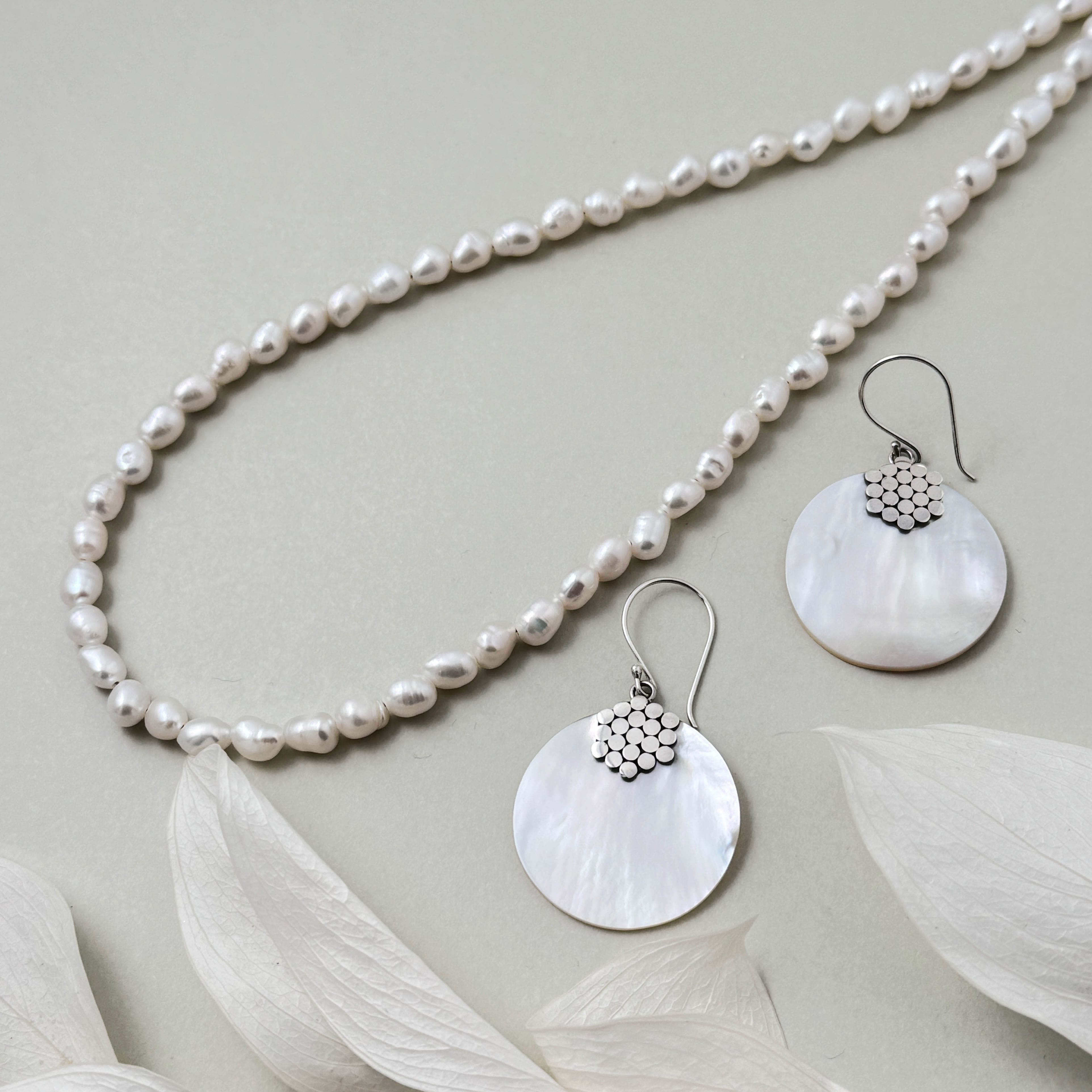 ライス型の淡水パールを連ねて