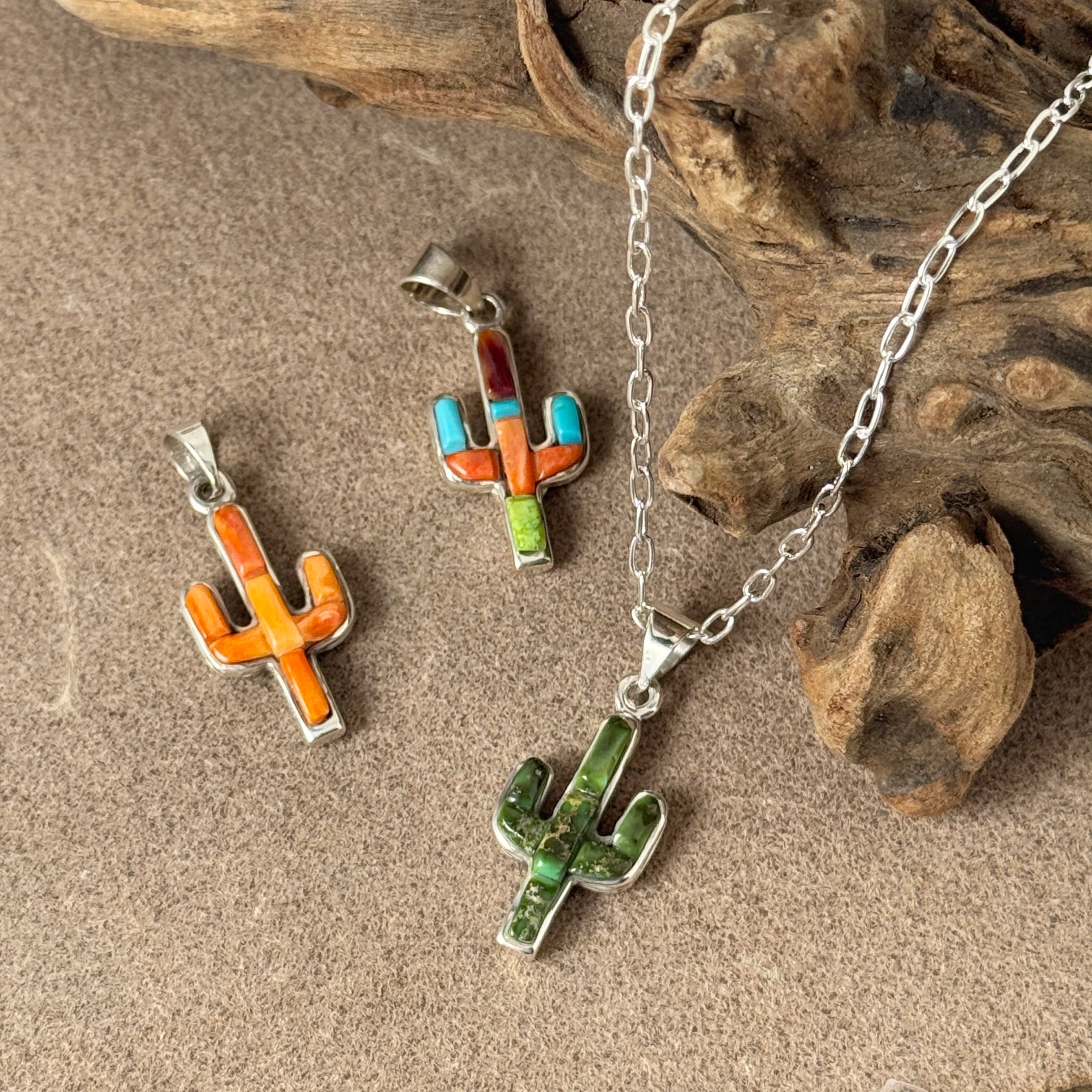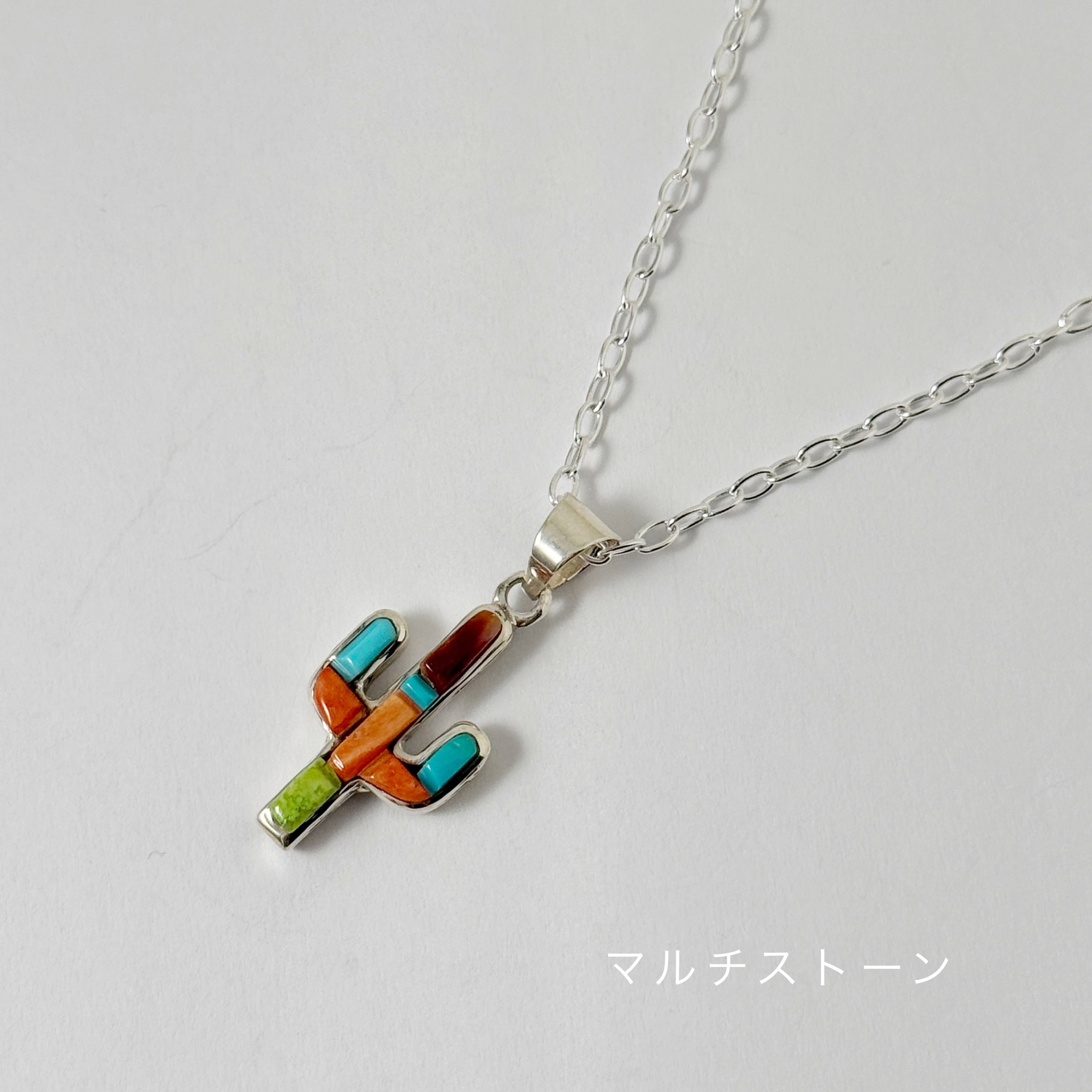 《Indian Jewelry》 サボテン ターコイズ-マルチストーン 2way ペンダント スパイニーオイスター